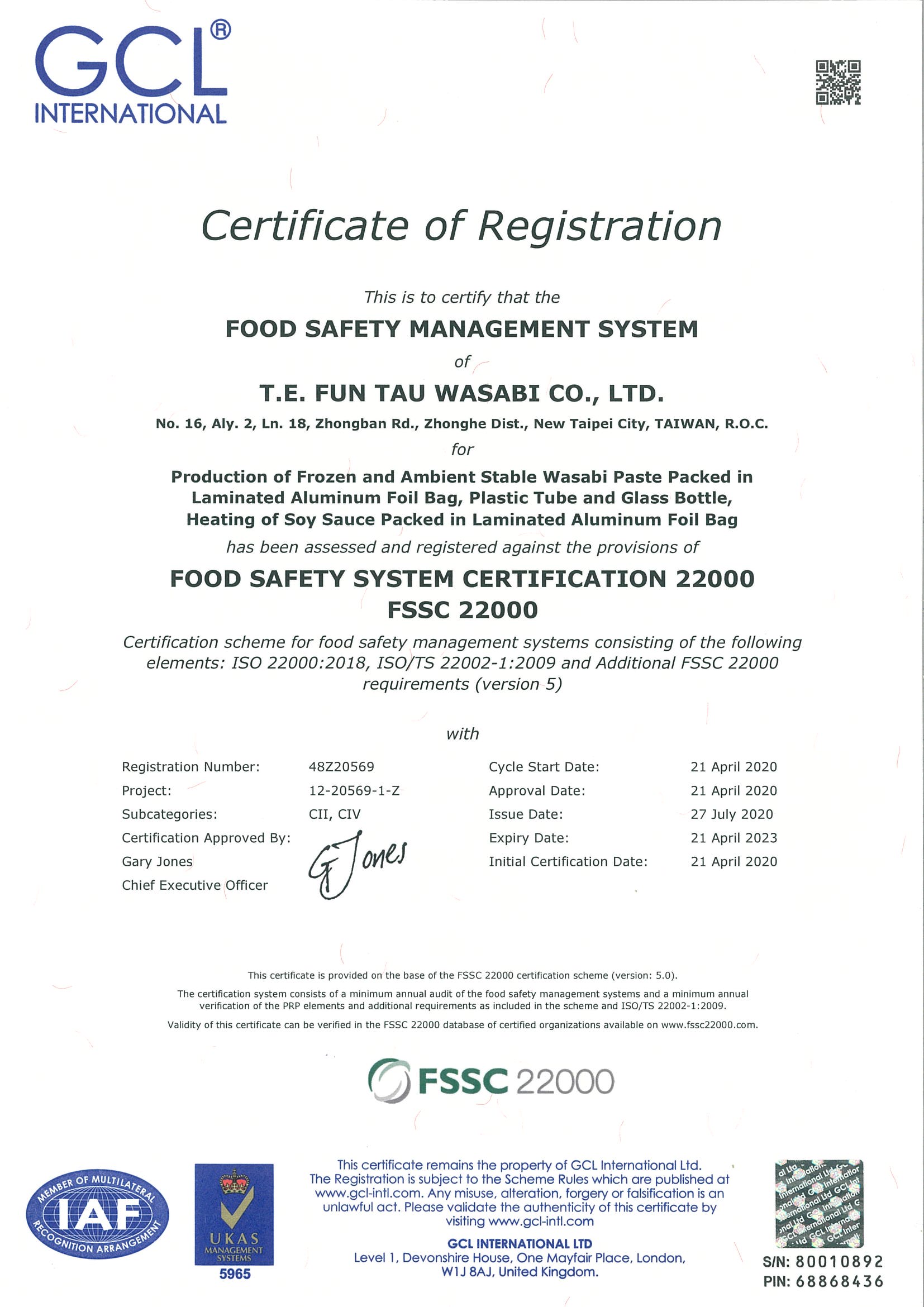 廠房設備與日本同步,工廠通過FSSC22000食品安全管理系統標準,並設有內部實驗室,兼具生菌數、農藥殘留、水活性、含水量、糖、鹽度等實驗設備,以及作業現場建立異物監測系統。重重關卡,為的是將食品推向安全 放心 美味的境界。